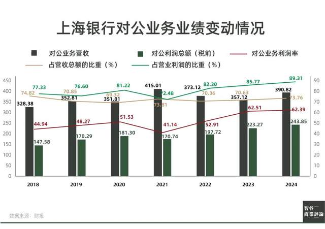 當然,第三階段尚有177.54億貸款應該但未被認定為不良,而如果説不良認定存在能“注水”的空間,那麼更有力的例證,是上海銀行對公業務的利潤率呈現階梯式爬升。