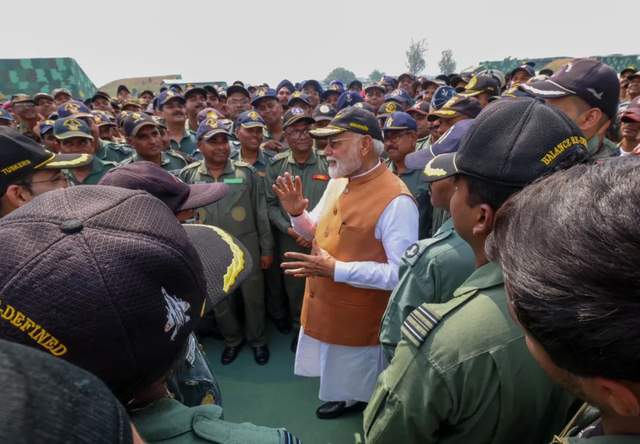 莫迪還喪事喜辦,在視察時宣佈舉國歡慶10天,以慶祝壓倒性的勝利。問題是,這不尷尬嗎?即便巴基斯坦不算贏,印度也不至於贏麻了啊。