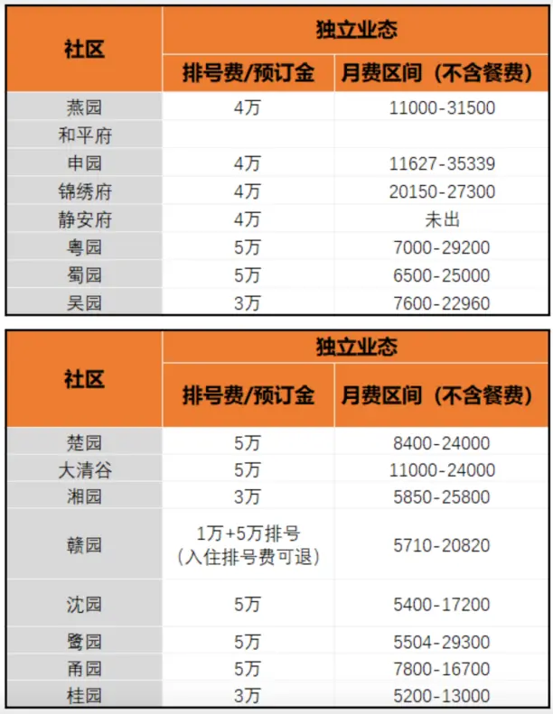 國內一些高端養老社區收費標準。(圖/Taikang Community)