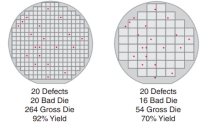 芯片良率,指合格芯片的數量與生產出的總芯片數量的比例。即:良率=合格芯片數量/生產的芯片總量 x 100%