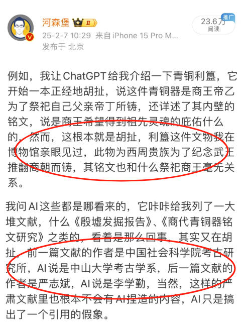 但ai瞎編叫做幻覺,人類把ai瞎編的東西當作真事發出來就純屬造謠了。