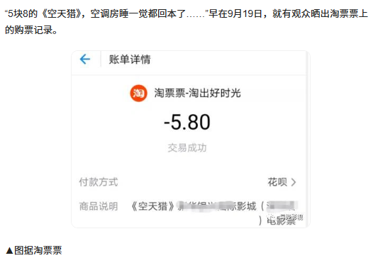 到了2017年國慶檔,檔期內上映的13部電影也都採取了票補模式,當年亦有觀眾在某票務平台曬出購票記錄,直言“5.8買一張電影票,空調房裏睡一覺都回本了。”