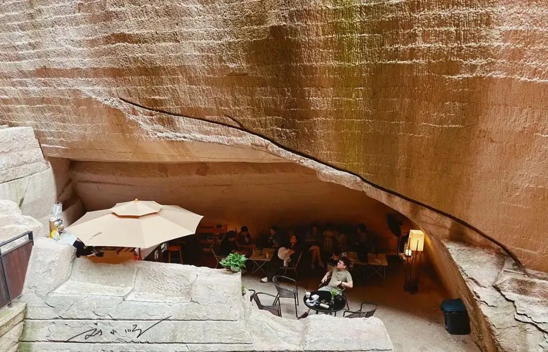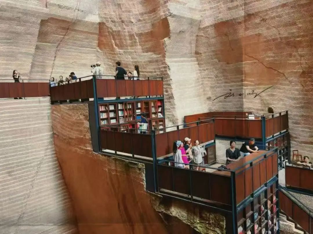 巖宕書房最大的魅力在於它建在一家巨大洞窟裏,這座洞窟有數十米之高,抬頭望上去,書架與座椅依巖壁而建,書店最大程度地保護洞窟原貌的同時,加入了現代的設計元素和手法。在“巖宕書房”裏有一家“喜笑巖開”咖啡館,陽光從洞口頂部灑下來,遊客坐在咖啡館一邊看書一邊喝咖啡,讓人身處書店有一種奇幻的體驗。