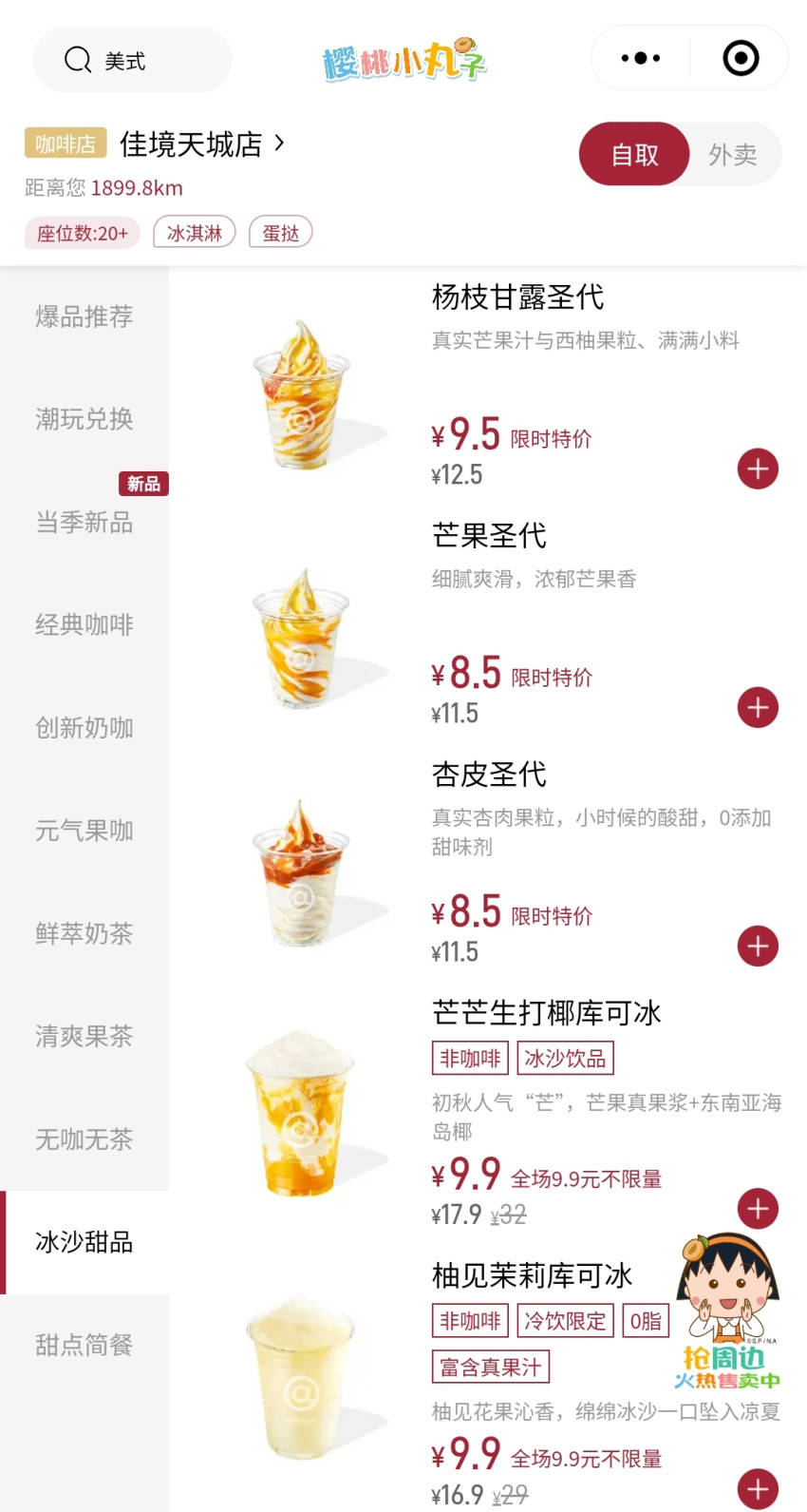 價格上來看,庫迪咖啡系列的冰淇淋產品走的是相對平價的路線,其中甜筒售價為4元,聖代的價格為7-9.5元,6款冰沙產品則均為9.9元。