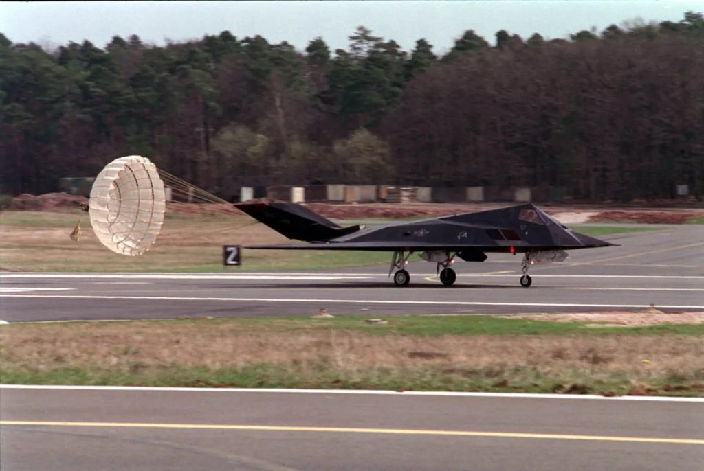 1999年4月4日,一架F-117在德國施潘達勒姆空軍基地降落。美國空軍