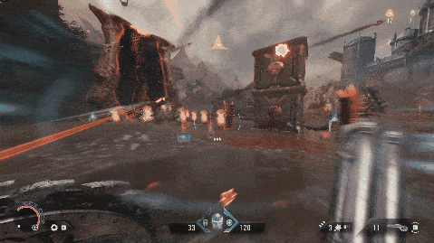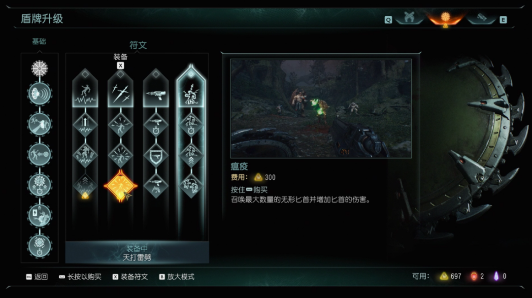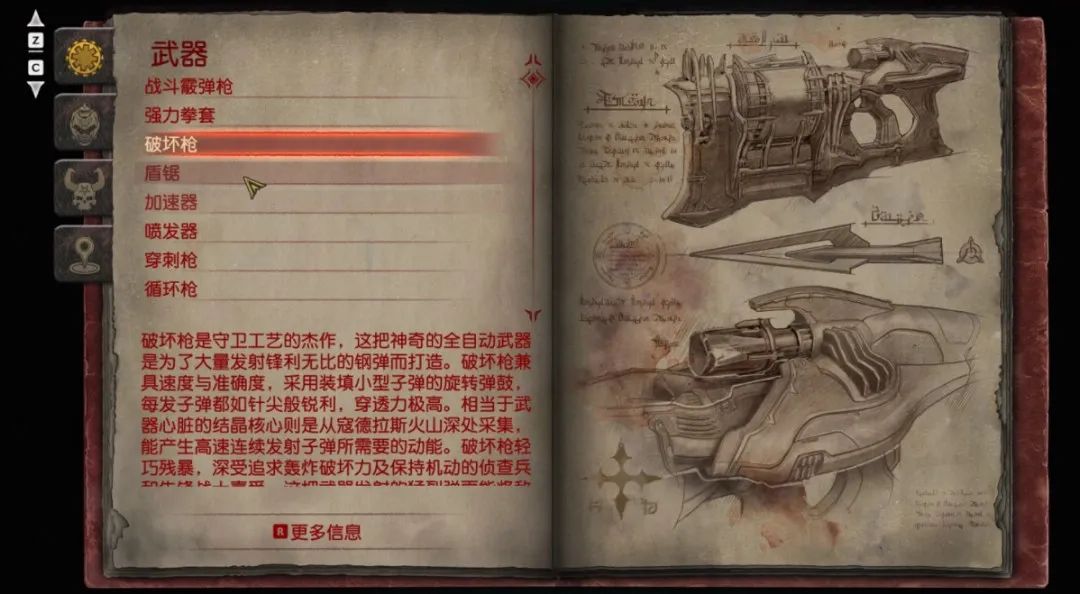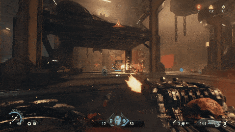 很多武器跟對應的升級選項,都有類似“集中器”持續使用提供加成的設計,鼓勵玩家挑一把最順手的出來,從頭用到尾。乃至有些武器必須結合盾鋸使用以發揮最大潛力,如火箭筒就有個成功彈反後炸自己回血的升級項,兼具高風險和高收益。
