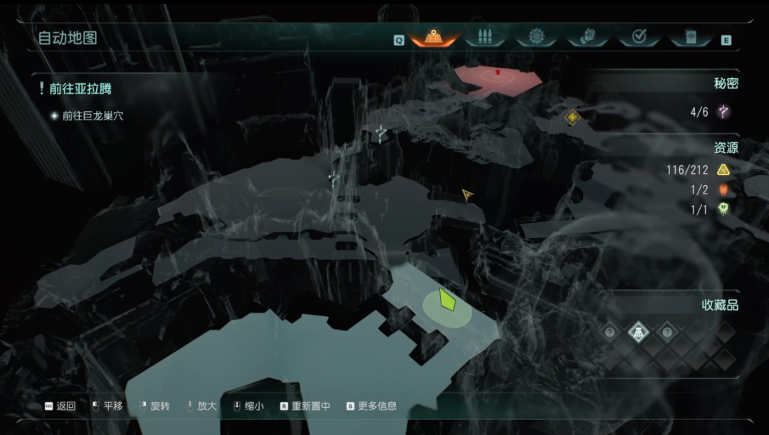 《DOOM》(2016)時期的“迷宮”地圖已成歷史。經歷兩部作品打磨,《黑暗時代》的地圖功能相當實用,行進路線清晰明朗,還會特地標出玩家尚未經歷的遭遇戰,以及有待尋找的“秘密”。《永恆》的“不歸點”圖標也得到繼承,通過及時告知玩家過了這個點就無法再回頭,讓玩家查缺補漏。