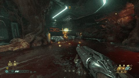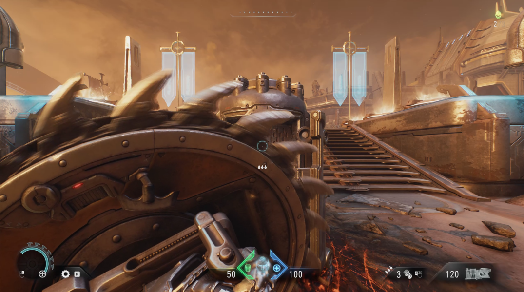 其中固然有我選了最高難度的因素在,但這種類似“守關老師”的設計,結合這次新添加的主力近戰武器“盾鋸”,也被視為這代DOOM從“射擊遊戲”向“動作遊戲”轉變的標誌。
