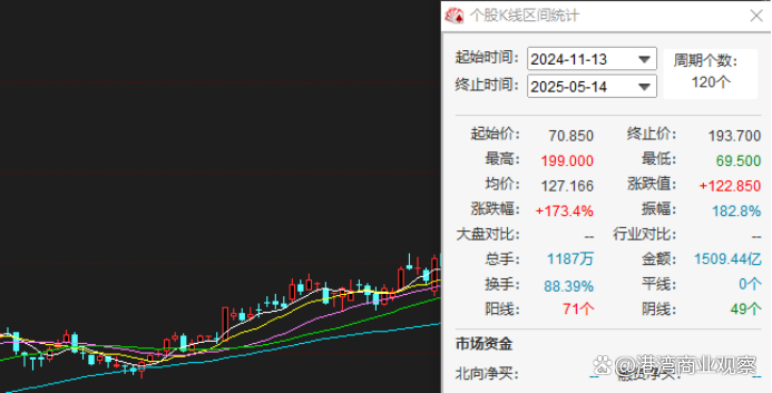 截至5月14日收盤,泡泡瑪特收報於193.7港元/股,市值高達2601.28億港元。踩着高位拋售的另一面是,近半年左右,泡泡瑪特股價漲幅超過170%。走勢相當不錯。