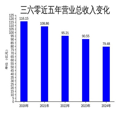 從財務數據來看,其業績下滑趨勢明顯,虧損局面不斷加劇。2022 - 2024 年,360營業收入分別為95.21億元、90.55億元、79.48億元,同比下降12.54%、4.89%、12.23%;歸母淨利潤分別為虧損22.04億元、4.92億元、10.94 億元 ,三年虧損額合計高達37.9億元。2025 年第一季度,雖營業收入同比增長 8.39%,但淨利潤虧損2.73億元,同比增虧149.16%。