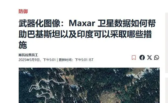 於是印度《印刷報》緊接着表示稱,疑似美國衞星為巴基斯坦的軍事行動提供了服務。報道稱,在克什米爾恐襲事件之前,美國商業衞星公司麥克薩疑似持續向巴基斯坦地理空間公司發送印控克什米爾境內的高分辨率衞星圖像,雙方建立了合作關係。