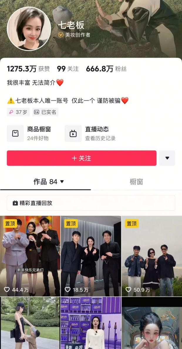 去年12月,三言發現當時擁有700多萬粉絲的七老闆,賬號已經取消了三隻羊的MCN認證。如今,七老闆的抖音號粉絲為666萬。