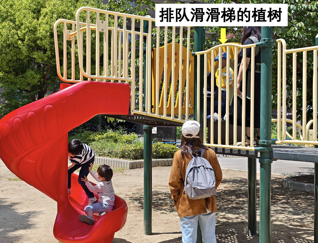 結果剛從酒店出來,植樹就被旁邊的小公園迷住了腳步,玩了好久滑滑梯…