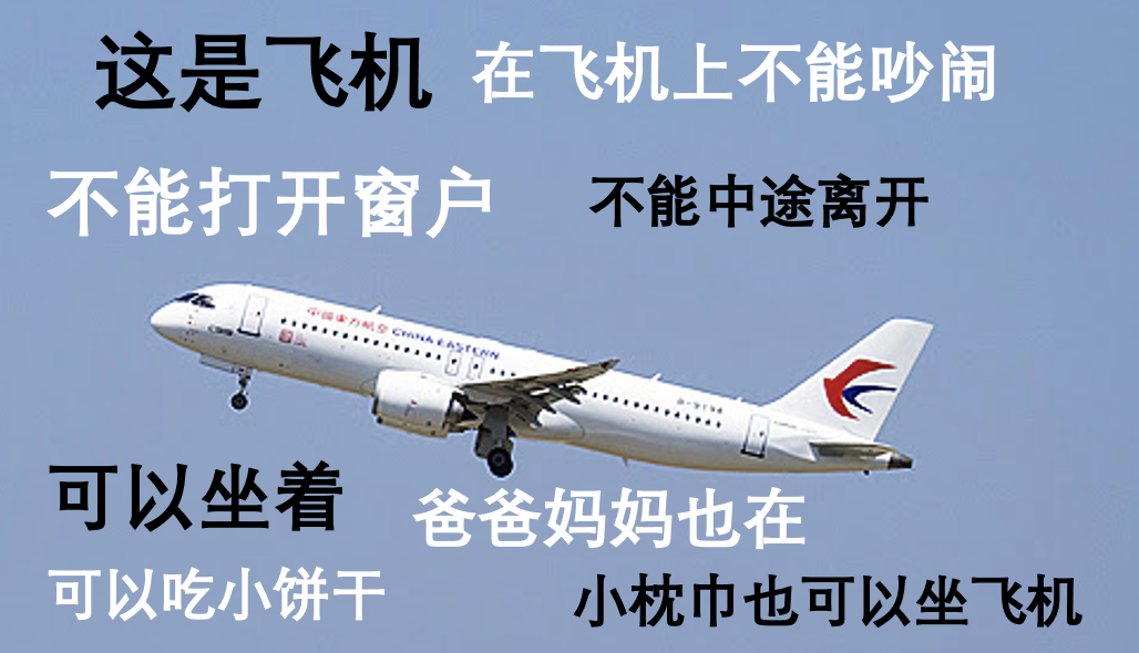 這次出門要坐飛機,我最怕娃在飛機上哭鬧,為此提前一週就進行飛機適應性教學,每天在家指着繪本:這是飛機,在飛機上不能説話哦