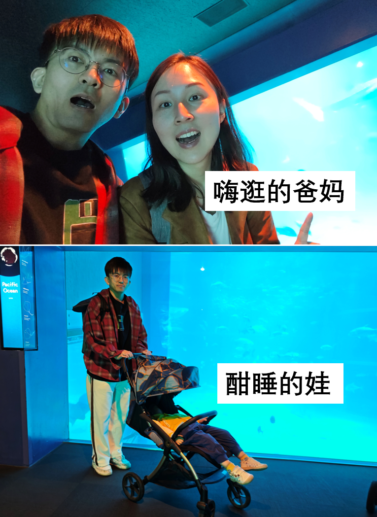 娃可能哭太累了,後來逛海洋館全程在睡覺…我和亞清倒是逛得挺開心的,看到了大鯨鯊!大蝠鱝!大螃蟹!