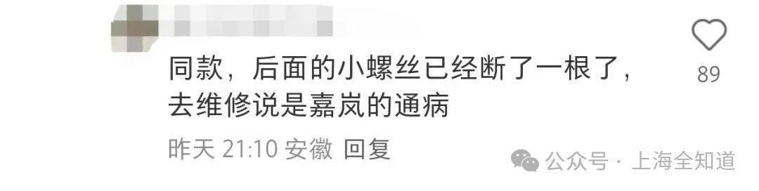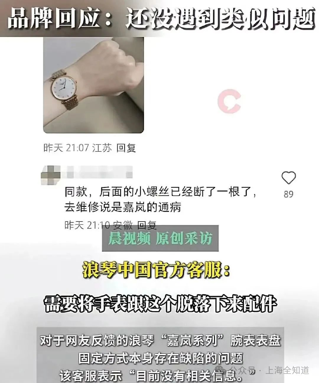 安徽網友説,自己同樣購買了浪琴腕錶,去更換電池時師傅發現**“後面的小螺絲已經斷了一根”。**