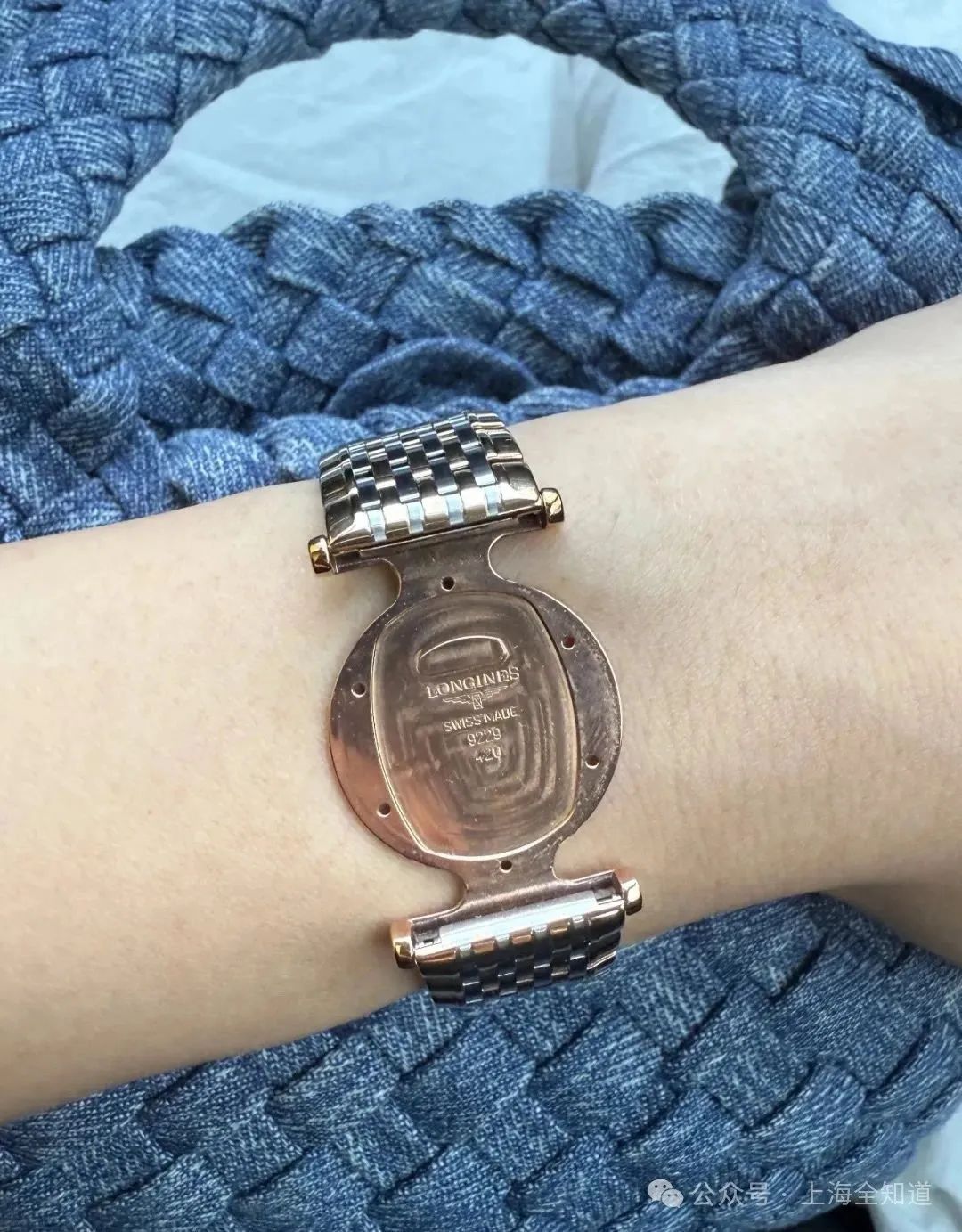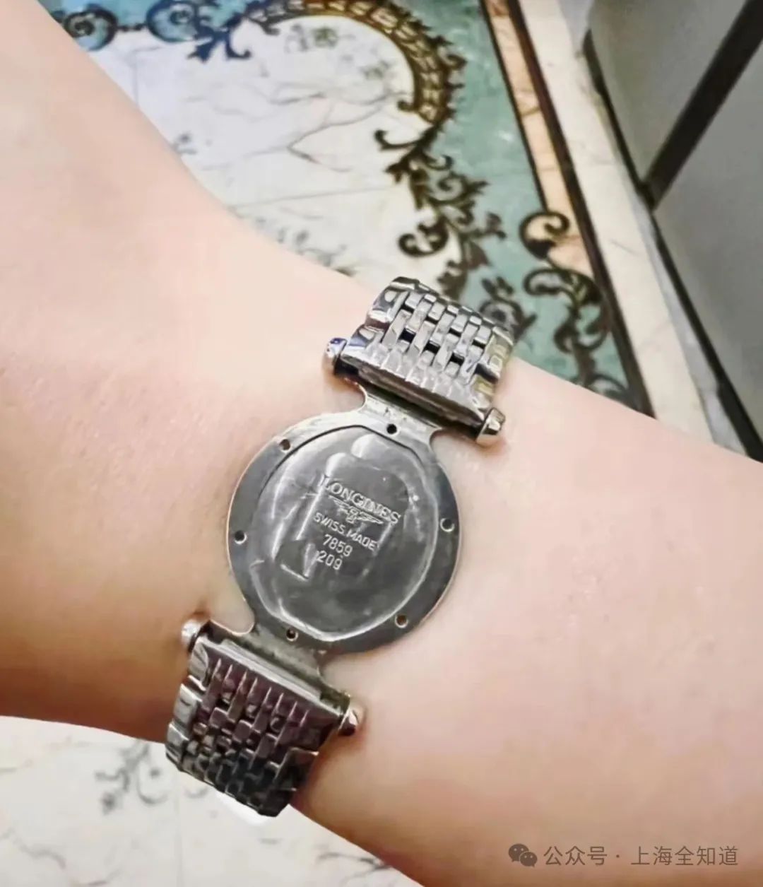 網友曬出手腕,手錶的錶盤部分已不見蹤影,手錶秒變手鍊,錶帶上固定錶盤的部位則有浪琴的鋼印標誌。