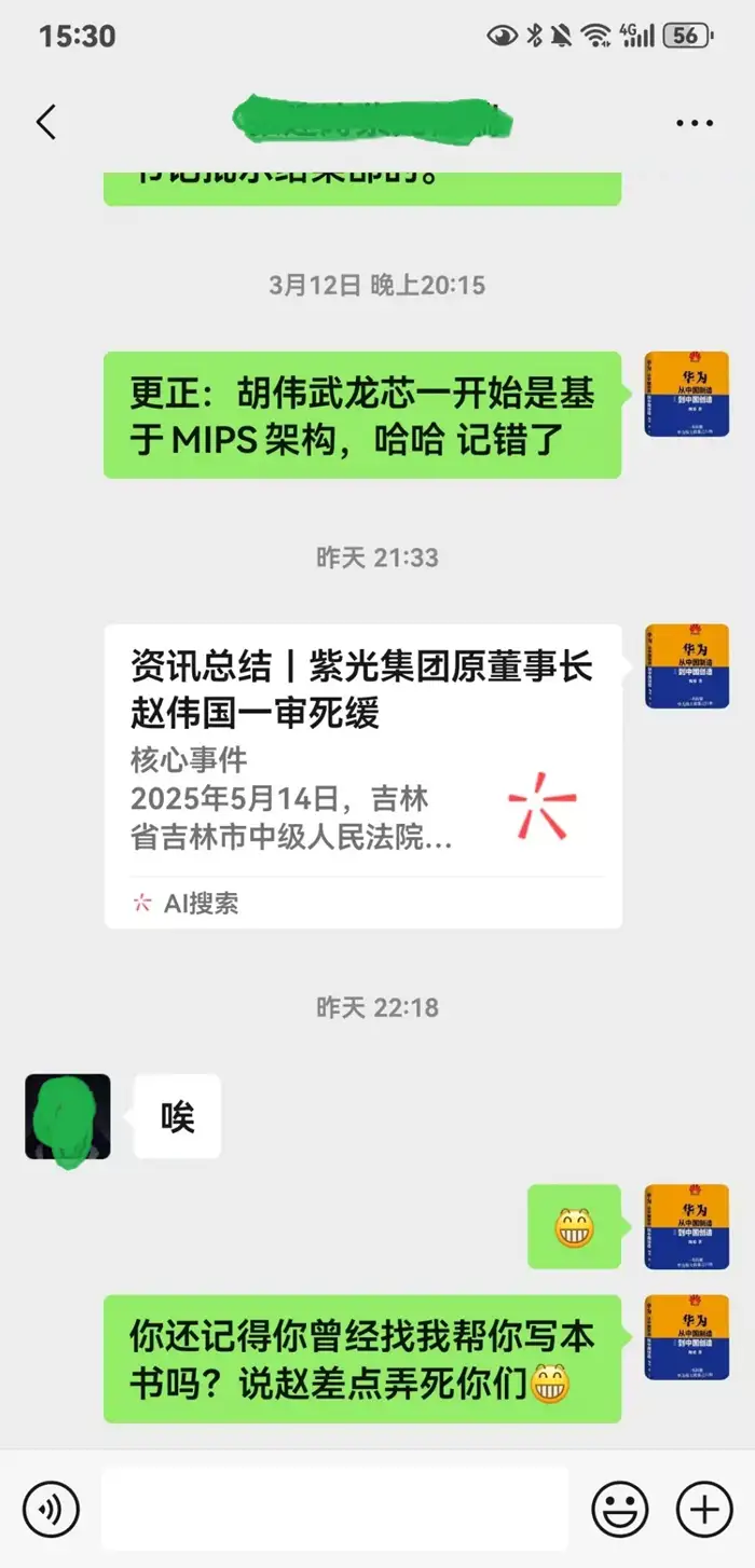 這裏説説我前面提的那家存儲芯片企業,正好今天網上看到紫光趙偉國判處死緩的信息,我轉發給朋友,他一聲嘆息。