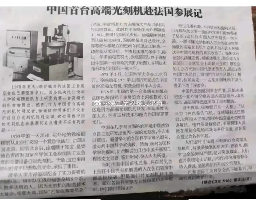 1978年夏天,中國首台高端光刻機赴巴黎參加法國工業展。