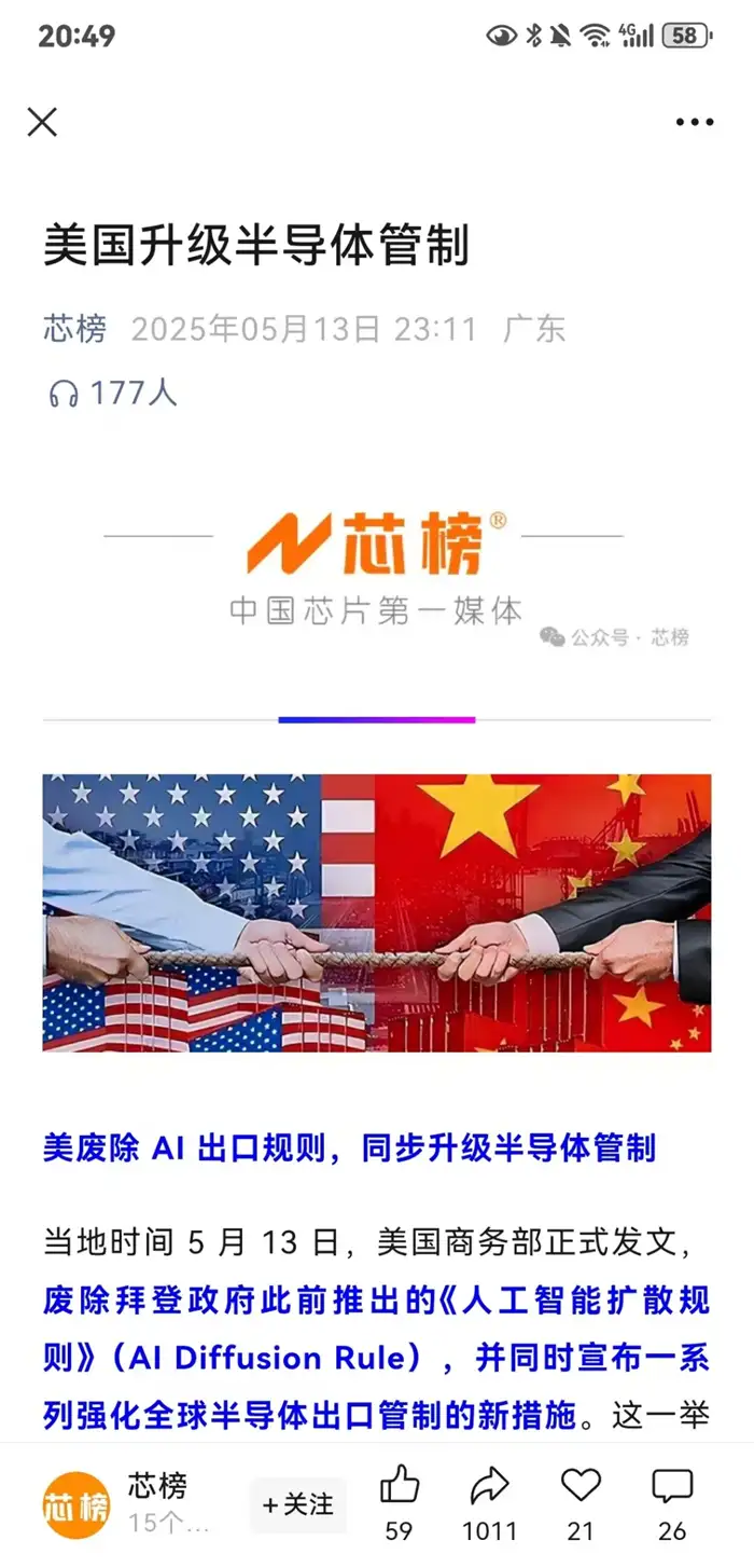 2025年5月13日,美國出台芯片管制條例,針對中國發起新一輪科技狙擊戰。但中國波瀾不驚,中國業內人士都知道,這是美國總統特朗普無愧於對華“川建國”光榮稱號的損美利華之舉。