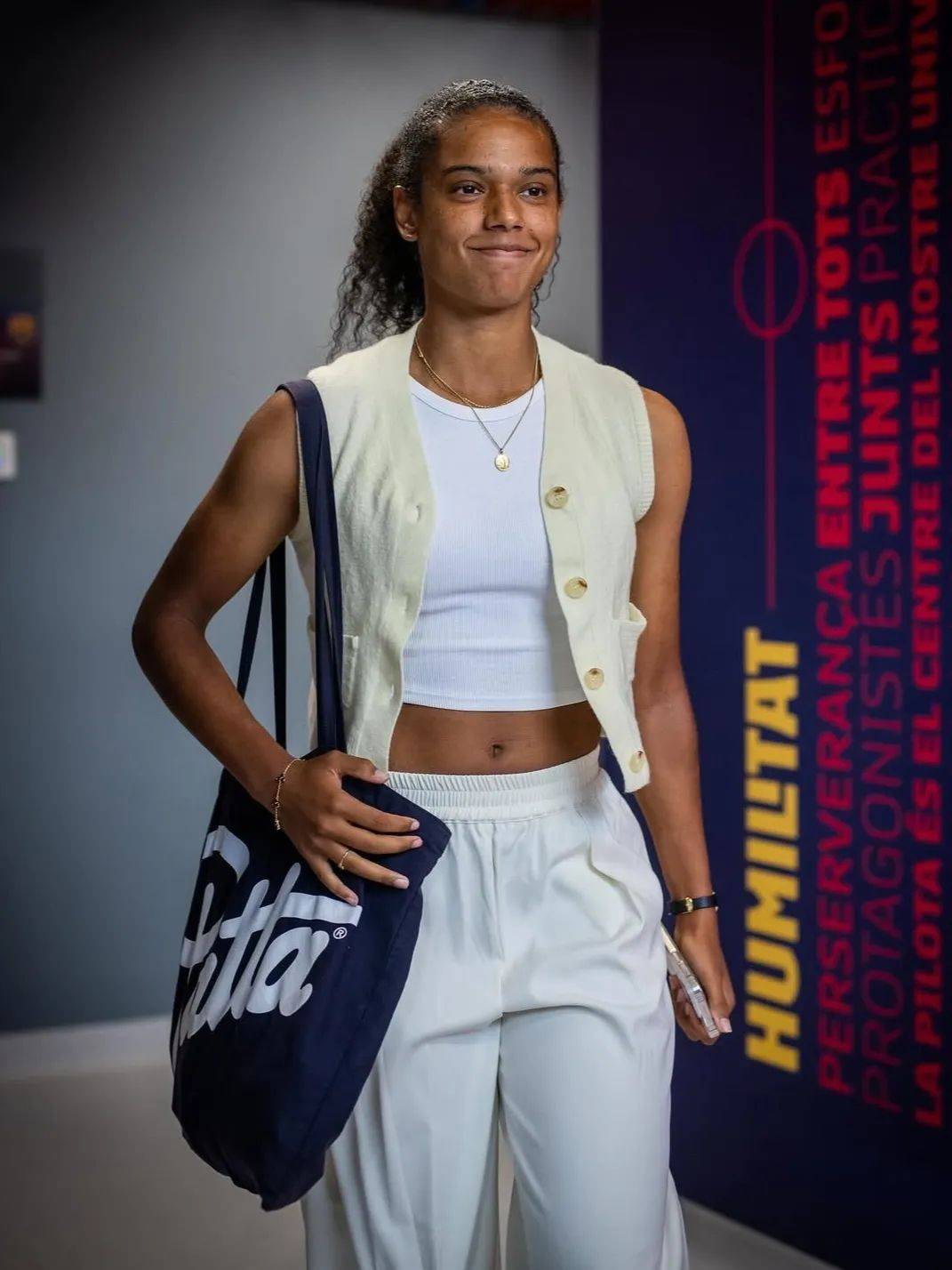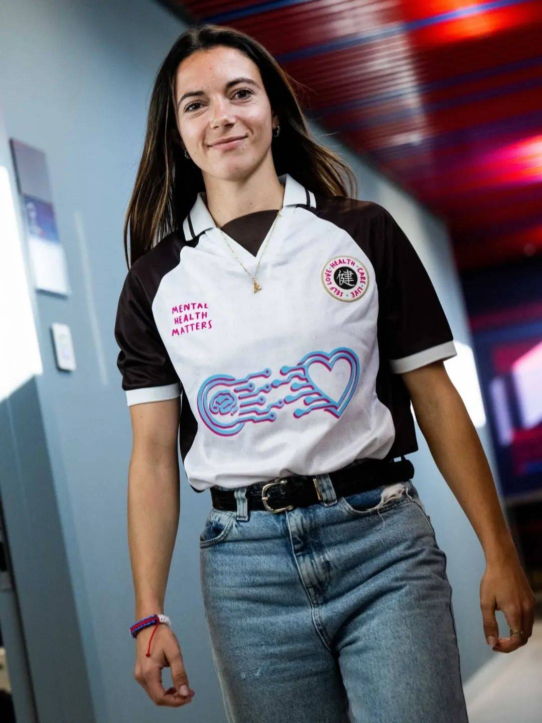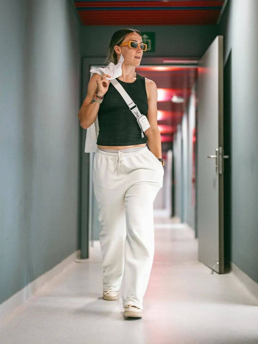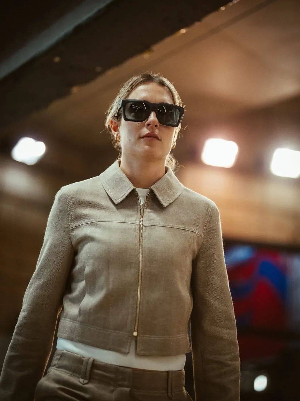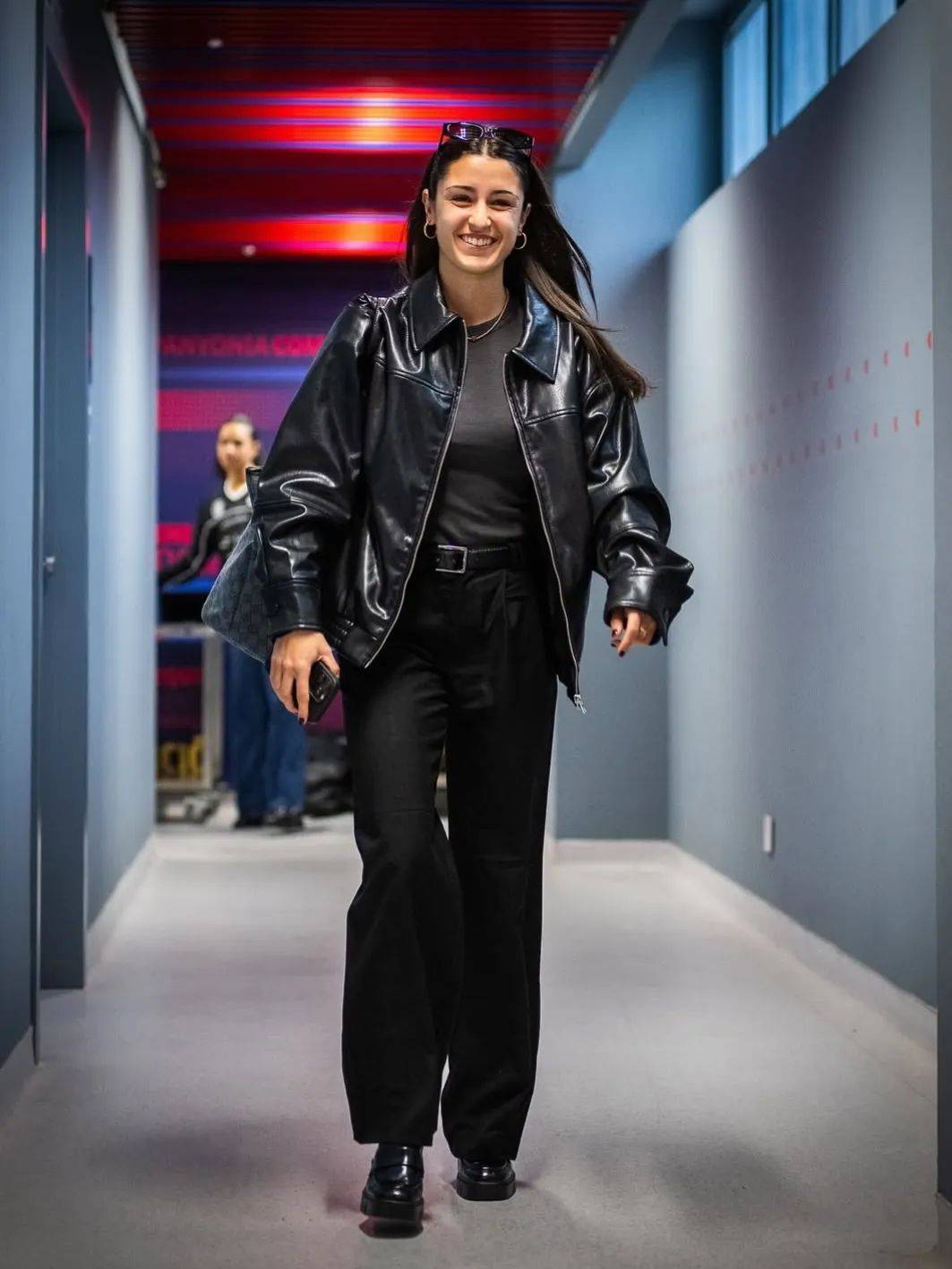 不論是亞歷克西婭·普特利亞斯(Alexia Putellas)身披裁剪利落的廓形西裝外套,還是艾塔納·邦馬蒂(Aitana Bonmati)上身插肩Polo衫與牛仔褲詮釋復古穿搭……在通道氣場全開的她們不像即將比賽的球員,倒像是剛從時裝週街拍現場走出來的明星。