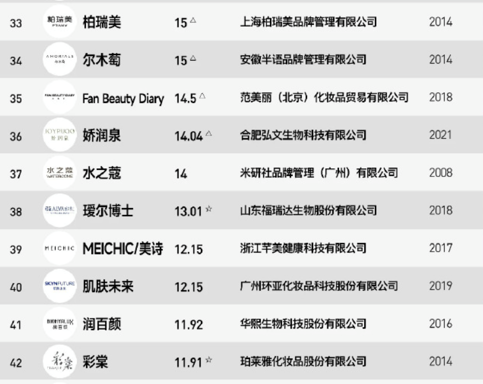 近期,中國美妝網發佈了“2024年度中國美妝品牌TOP100”榜單,其中FAN BEAUTY不僅在榜,還以14.5億元的營業收入排名第35位。