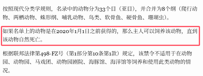 其實,2018年的《負責任對待動物法》雖然禁止了私人飼養部分動物,但還額外做出了人性化的規定。如果這些動物的飼養者此前是通過合法途徑購買的動物,就可以在2020年1月1日之前進行登記,並繼續飼養這些被禁止的動物,直到其自然死亡。而在法律正式頒佈後,這些動物就不能再合法買賣了。