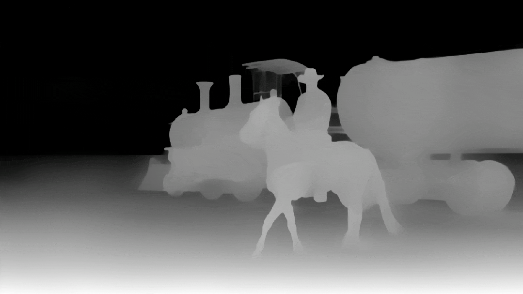 灰度視頻提供了內容的明暗信息,可用於指導模型為其上色( 彩色化 )或重建細節。在下圖中,Wan2.1-VACE 還基於灰度圖生成了在運行的火車旁邊騎馬的男子的視頻。