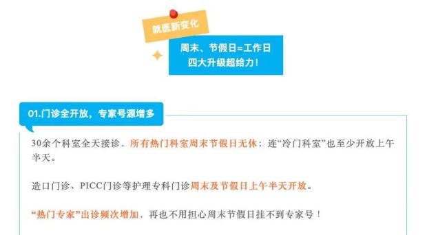 早在2022年10月中旬,醫院就曾提出“全面開放週末門診”,重點增加“熱門科室”“熱門專家”的週末出診,實現週末門診與工作日門診“無差別、同質化”。