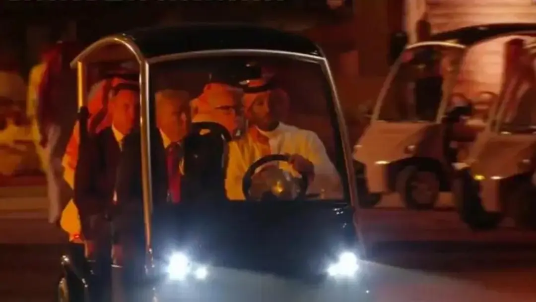 晚宴開始前,王儲更是用高爾夫球車親自載他前往晚宴現場,因為特朗普喜歡坐高爾夫球車。