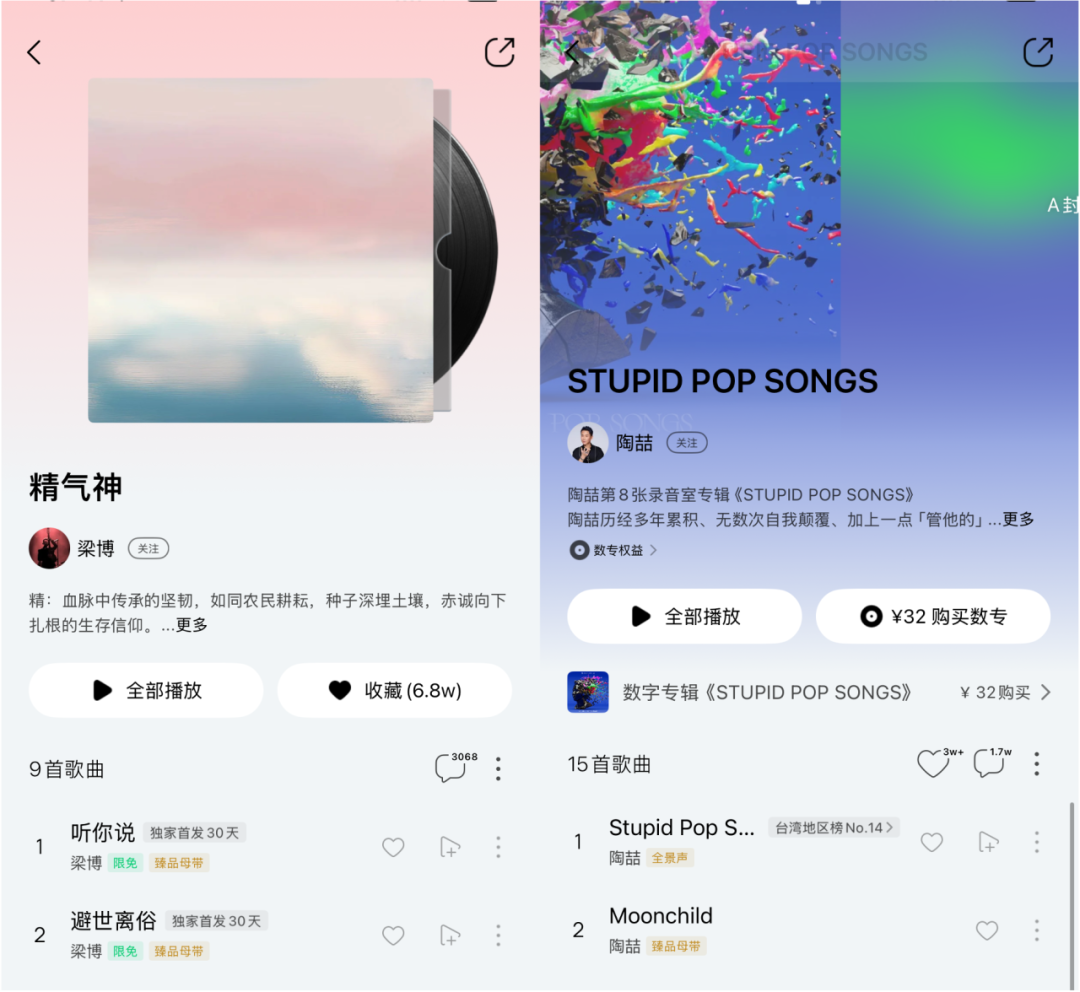 2025年4月初,陶喆時隔12年,發行了自己的第8張錄音室專輯;同月,梁博也在沉寂6年後,拿出了自己的第4張專輯。