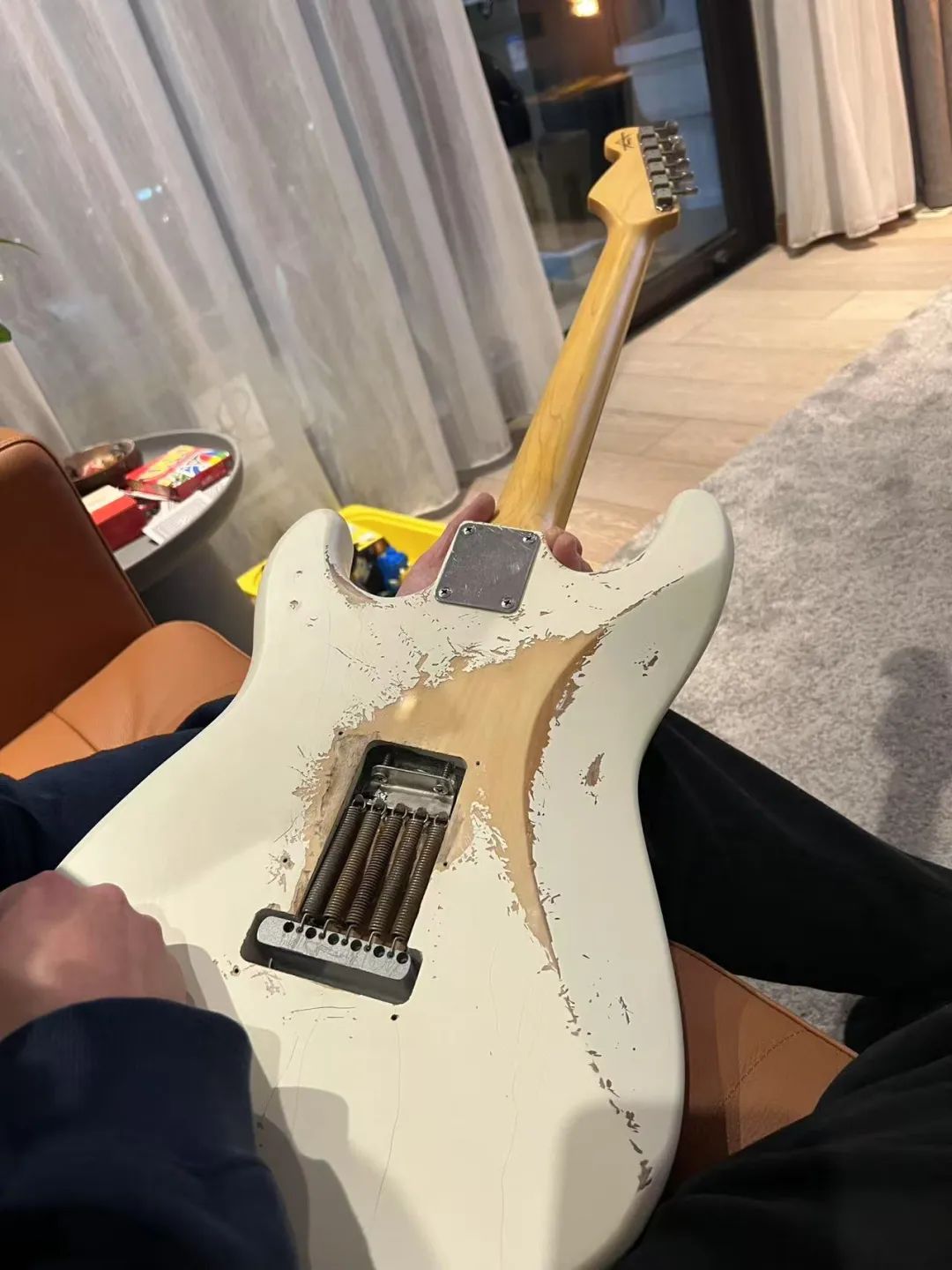 不知是受了哪位大神的蠱惑,木馬爸爸很快入了“吉他做舊”的天坑。
