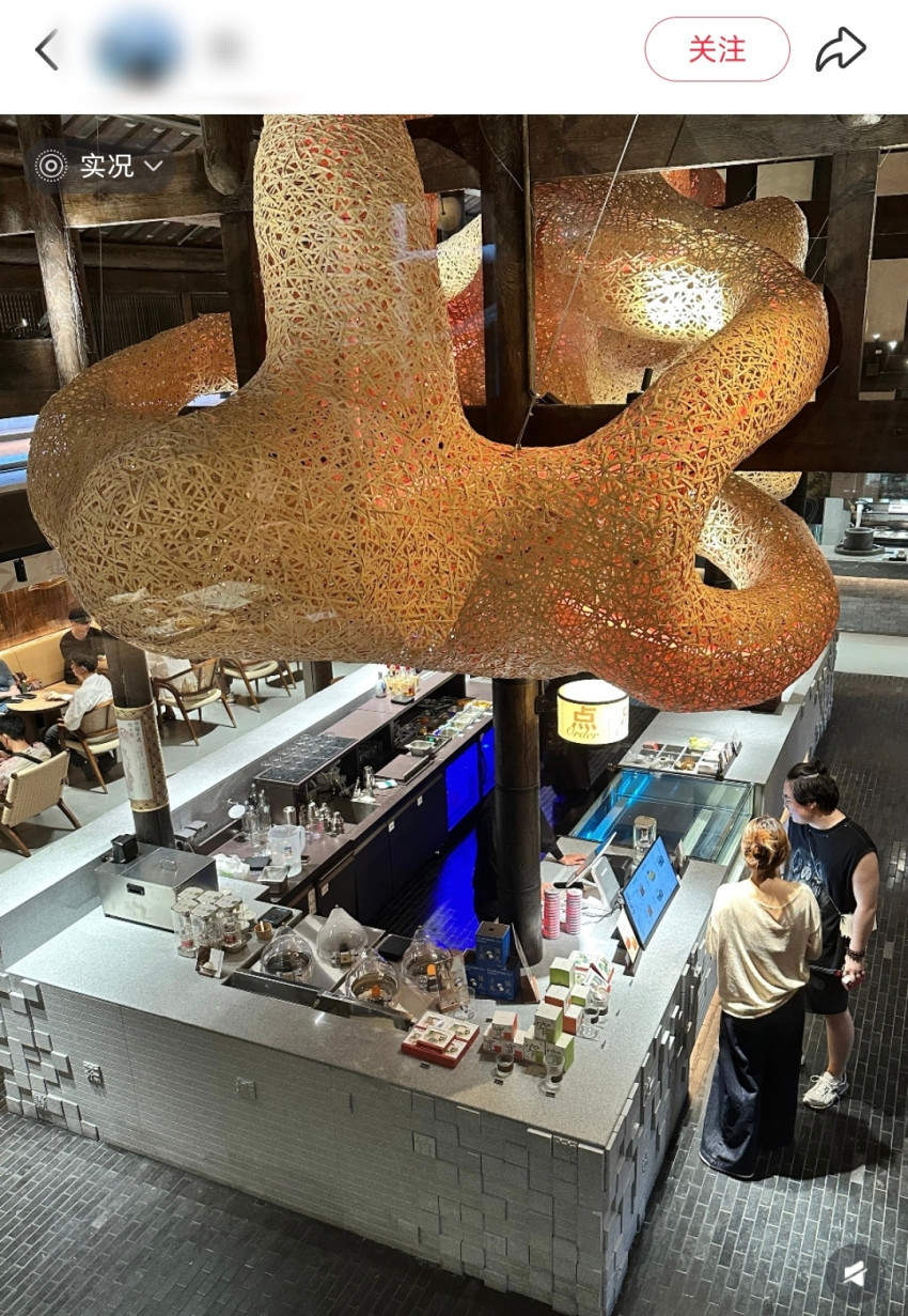 此外,該門店內的裝潢,則融入川劇、蜀繡等非遺元素,比如消費者一進大門就能看到吧枱上方高懸着造型獨特的竹編裝置,牆面上的蜀繡以及古建築元素的木雕。尤其是從一樓的“上房揭瓦”入口處還可以抵達露台區,露台區可以直接看到灰瓦連綿的屋頂,因此有不少消費者將此處作為打卡拍照背景,領略成都寬窄巷子不一樣的風景。整體來看,茶百道“探川覓飲”旗艦店是一家極具成都文化特色的茶飲店。