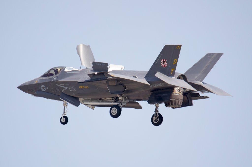 2021年4月2日,一架海軍陸戰隊F-35B在日本巖國海軍陸戰隊航空站降落。美國海軍陸戰隊照片由下士泰勒·哈蒙拍攝 泰勒·哈蒙下士
