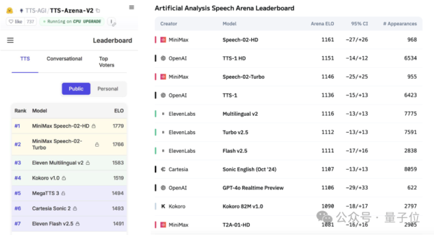 MiniMax最新發布Speech-02,同時拿下Artificial Analysis Speech Arena和Hugging Face TTS Arena兩項全球權威語音基準測評第一!