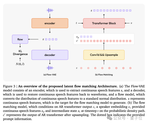 模型另一個重要創新在於引入了基於Flow-VAE的流匹配模型,進一步提升了生成語音的音質和説話人相似性。