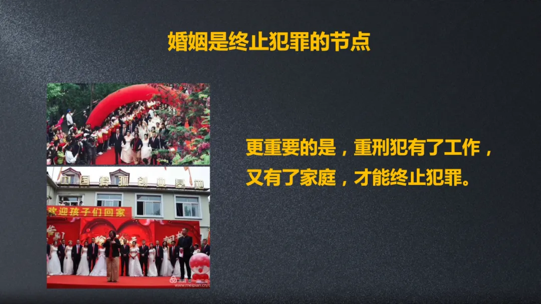 我在研究給這些人找活之後,你光給找活,有活幹還不行,你還得給他娶媳婦,讓他過上正常人的生活,才能夠終止犯罪。我們現在每年要給他們舉行一次婚禮,這些年我一共幫助了上百名重刑犯,幫助他們找工作,不一定都安排到做殯葬,有的媳婦怕殯葬怎麼辦,我就鼓勵他幹其他的事兒,現在一百個人裏有兩個重新犯罪的,有兩個離婚了是因為性格不好,不合離婚的。兩個犯罪的是因為他們喝完酒了,性格不好打架判刑了。總體上我這麼想的,如果我幫助一百個孩子,我能達到70% 生活的好,沒有重新犯罪的,那我就算是成功。