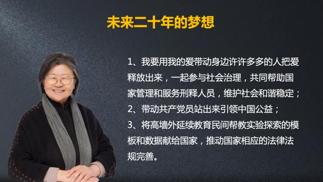 因為我是學法律的,研究研究為什麼咱們國家高牆外的延續教育,法律上是個空白點,我就重點幫助重刑犯。要研究幫助重刑犯,首先他回來了,你得給他飯吃,讓他有一份工作,讓他自食其力,成為一個誠實的勞動者。