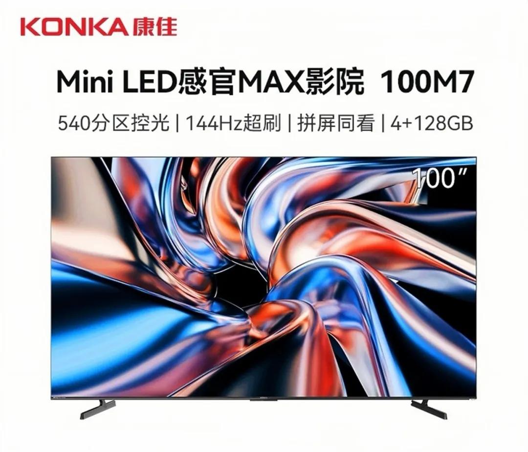 康佳在85和100尺寸產品上均有落地,以2024年發佈的100英寸Mini LED感官MAX影院M7為例,可實現影院級的觀看體驗,據悉後續還會大尺寸新品面世。