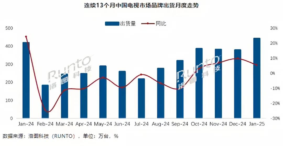 客觀地講,外部市場環境的變化不容忽視。 2024年全年,中國電視市場品牌整機的出貨量為3596萬台,同比2023年下降1.6%,刷新了至少從2010年開始十餘年來的中國市場出貨量新低,行業步入寒冬期。