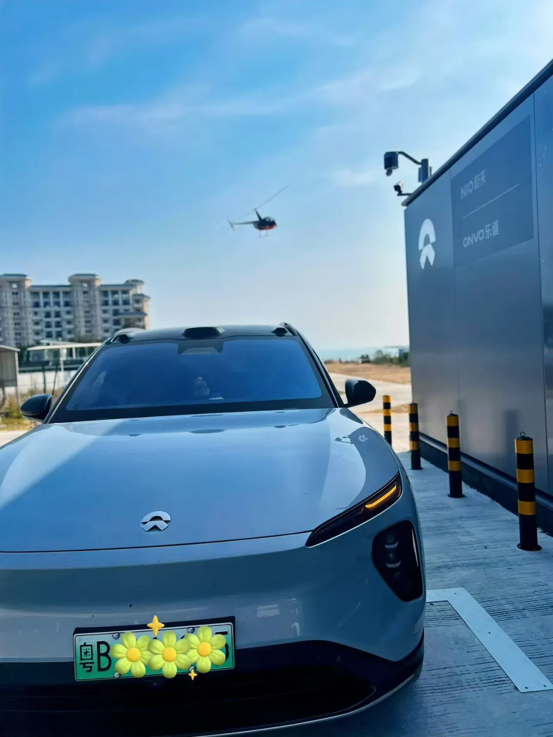 “(五一旅行)第二天專門打卡了南澳島硬虎直升機營地換電站,到達這獨一無二的海島神仙換電站,直升機在我頭頂上空盤旋,看着我的愛車和直升機同框,周邊這直升機觀光和卡丁車項目絕絕子,換電的同時還能盡情體驗速度與激情!”蔚來車主@白玫表示。