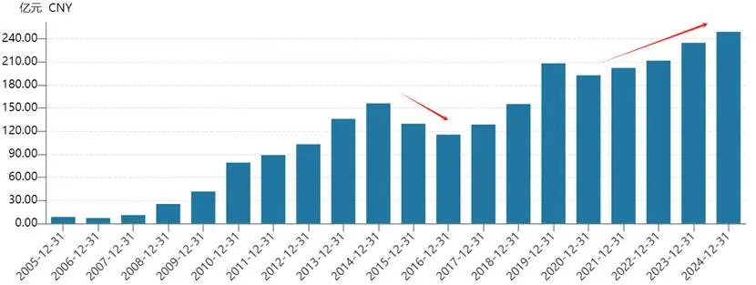 還有一點就是財務費用率持續走低,從2015年最高峯的30.7%大幅下降至2024年的10.75%。一方面,與公司降低資產負債率有關。另一方面,宏觀利率持續下行,可以節約大筆財務費用。