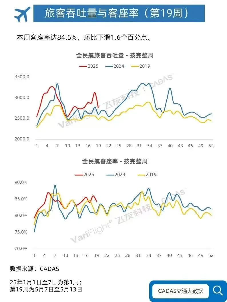 根據2024年和2025年初的數據,全國民航旅客吞吐量已經恢復並超過疫情前的水平,客座率也在節節攀升,但票價卻始終提不上來。