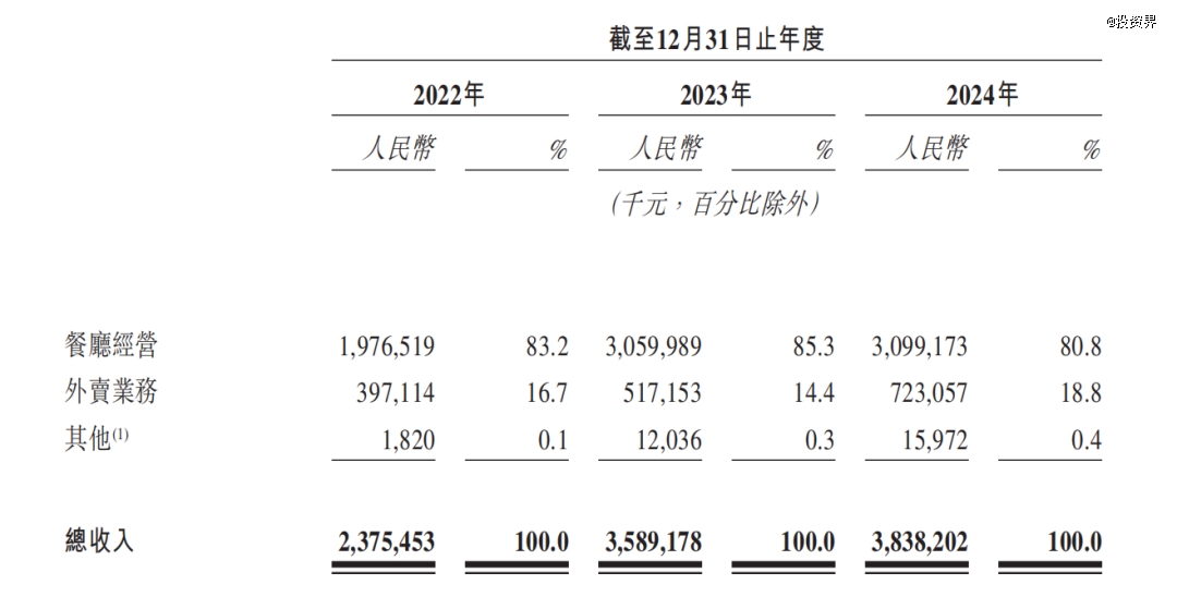 業績上來看,2022年至2024年,綠茶集團的營業收入分別為人民幣23.75億、35.89億和38.38億元,相應的淨利潤分別為人民幣0.17億、2.96億和3.50億元,顯示出一定的盈利能力。公司將業績增長歸因為餐廳數量增加。