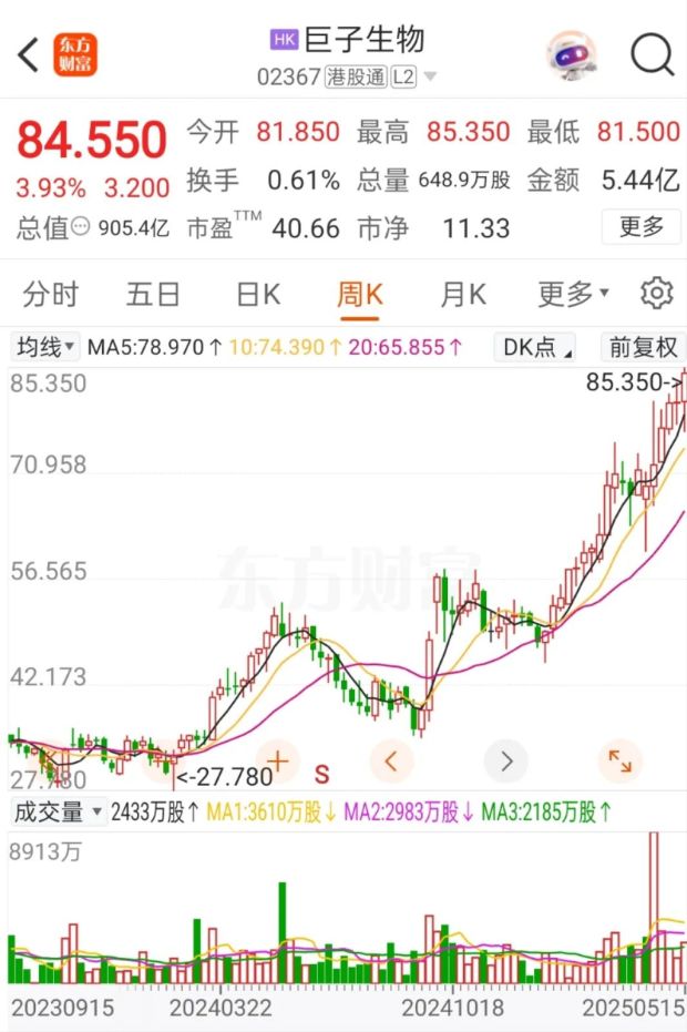 鉅子生物不斷創造業績神話,股價也隨之水漲船高。上市以來,公司股價不斷刷新歷史紀錄,至今漲幅超過200%,成為資本市場的“香餑餑”。