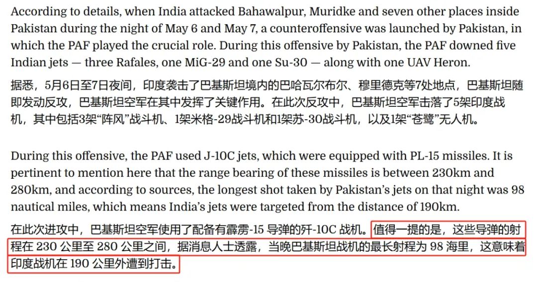 巴軍的通訊干擾機不僅竊聽了印軍陣風戰鬥機飛行員的通訊,還有可能致盲了印軍部分戰鬥機的空中通訊,為巴軍組織空中進攻和中距攔射製造有利條件。從這個角度來看,巴基斯坦空軍的空戰體系,技術水平甚至比俄羅斯空天軍還要先進些。
