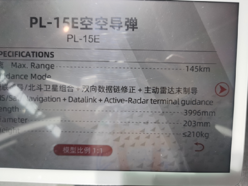 PL-15E是和美國製造的AIM-120D系列空對空導彈一樣,屬於傳統定義下的中距彈範疇,彈體長度不到4米,彈體直徑AIM-120D是178毫米,我們是203毫米,彈體重量我們大約是210千克,AIM-120D輕一些160多千克。