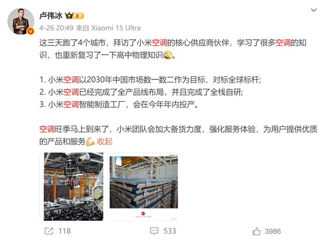 *題圖來源於小米空調微博。本文為特約作者投稿,如有疑問,歡迎聯繫我們。