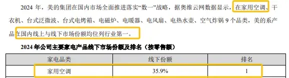詳細來看,2024年,其家用空調的線下市場份額為35.9%,排名第一;家用空調的線上市場份額為33.2%,排名第一。