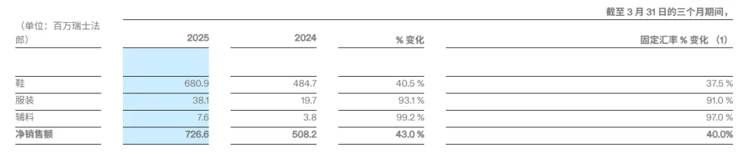 近日,昂跑發佈了2025年一季報。報告期內,昂跑淨銷售額同比增長43.0%,實現創紀錄的7.27億瑞士法郎。其中,亞太地區淨銷售額增長超130%至1.21億瑞士法郎,這主要靠中國及日本兩大市場推動。